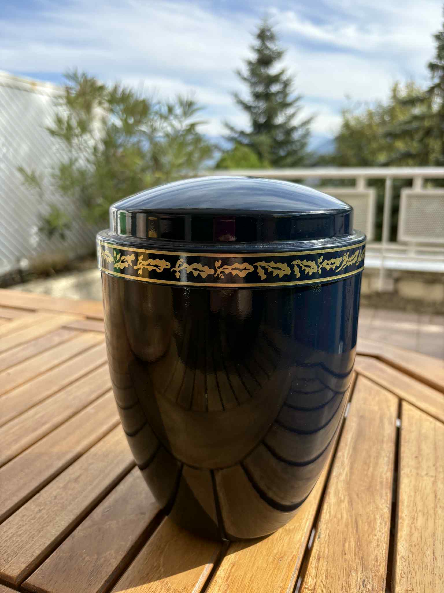 Range funeral urn SAMIA has several colors: green, burgundy, brown and blue. They are all a solid color, with no added patterns, engravings or imprints as decorations. Themetal urnSAMIA is a simple and discreet funeral product.