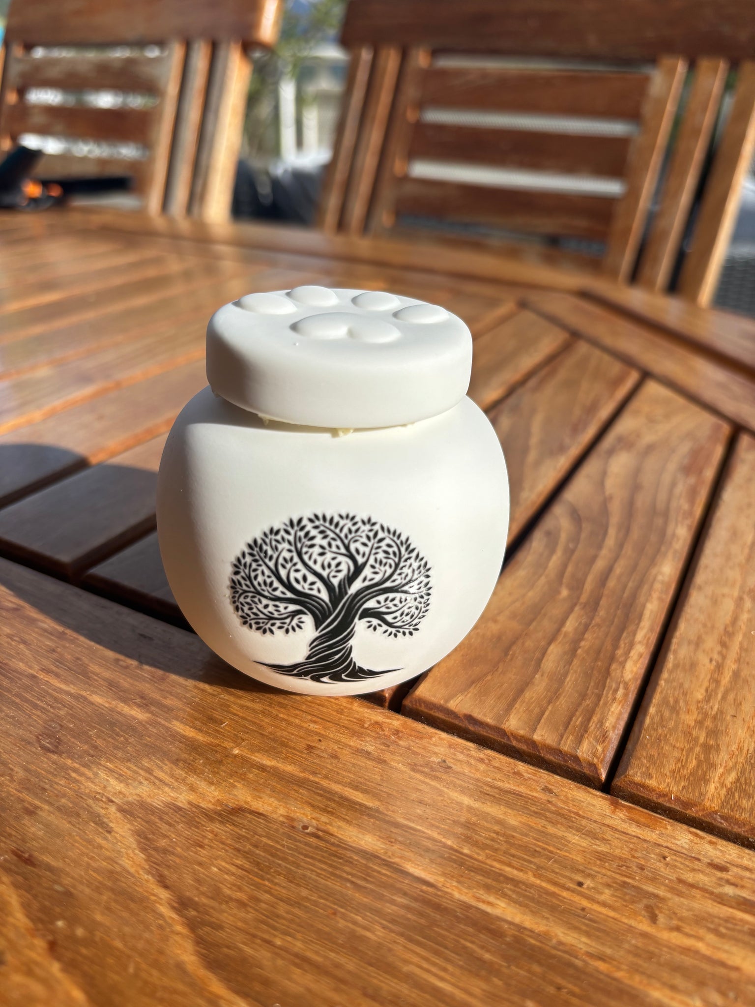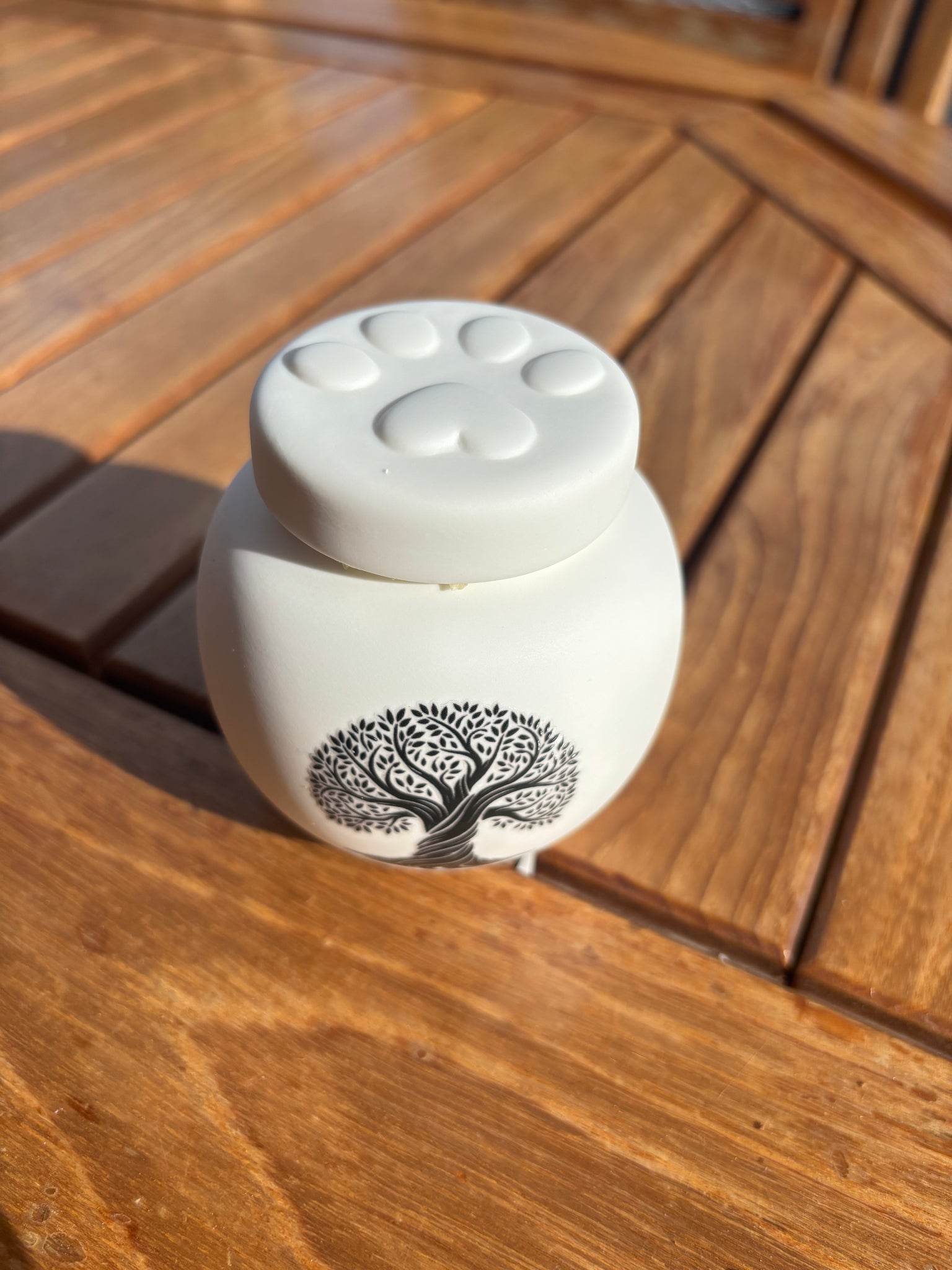 Faite en céramique, cette urne pour chat peut également servir d’urne pour chien, mais aussi pour rongeur et furet. Ainsi, peut importe la race de votre petit compagnon, ce modèle d'urne pour animaux conviendra parfaitement à vos attentes.
