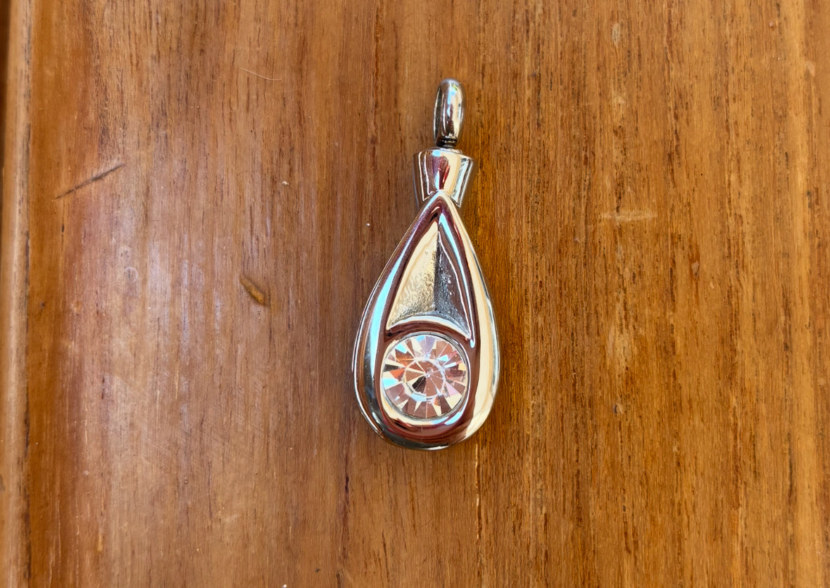 Urn pendant tear is our most popular cremation jewelry. Being tear-shaped, this urn pendant symbolises your sorrow of having lost your dear closed friend. Urn pendant is designed to hold a small amount of ashes, hair or dried flowers of ceremony. By taking closely a small amount of ashes, our memorial jewelleries enable to honor your disappeared friend.