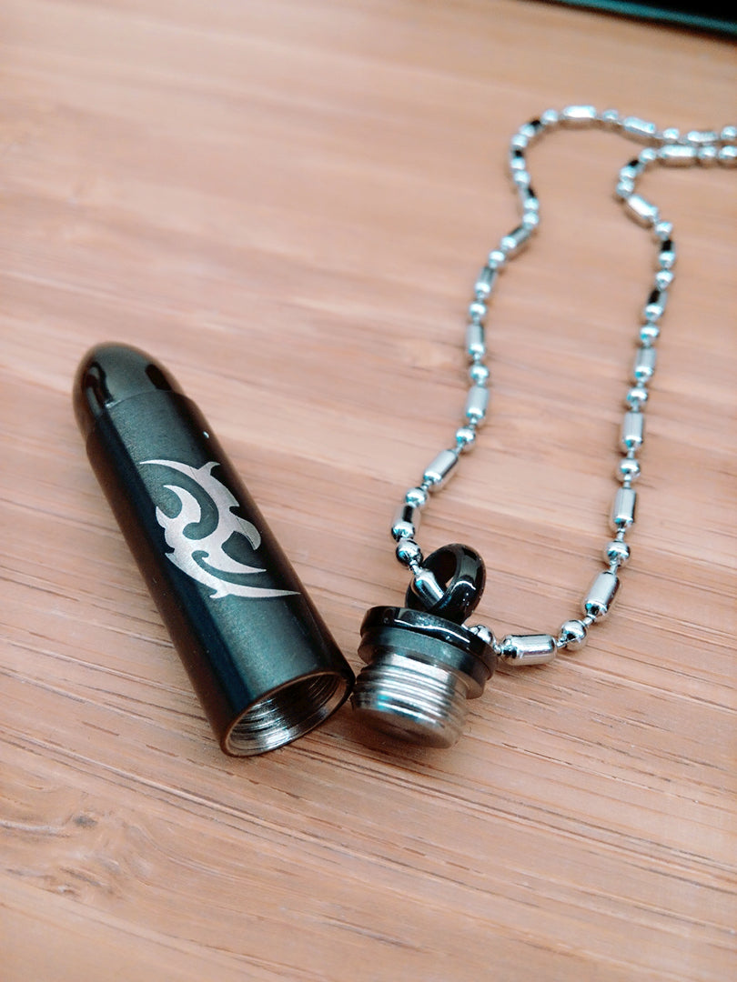 Made of stainless steel, thisurn pendant is durable and can be worn at any time. The originality of this urn pendant is that it looks like a ball, a shape rarely seen in funeral jewelry. Thefuneral pendant is decorated with an original pattern, the color of which is gray. There is another silver model with the same pattern in gray.